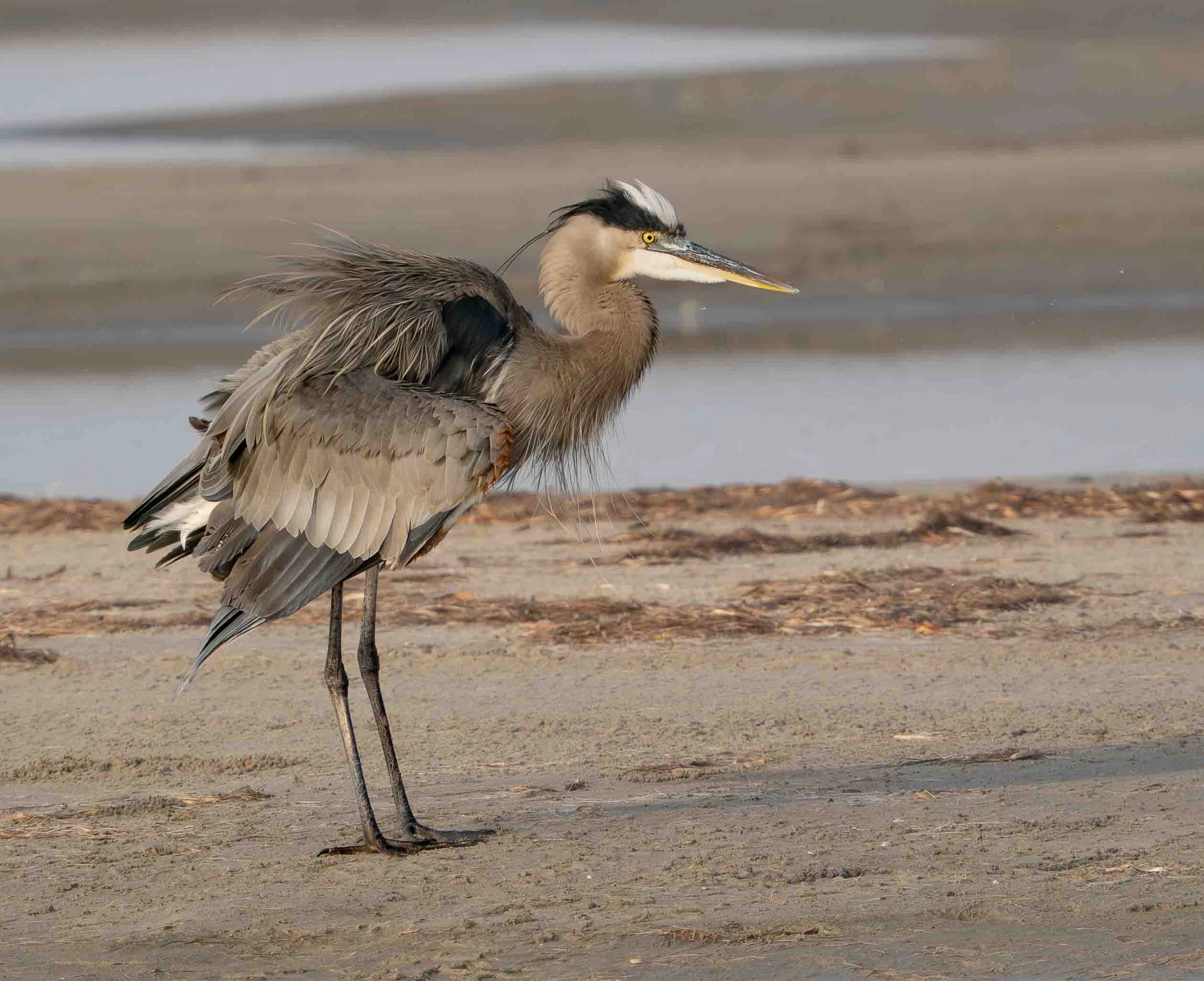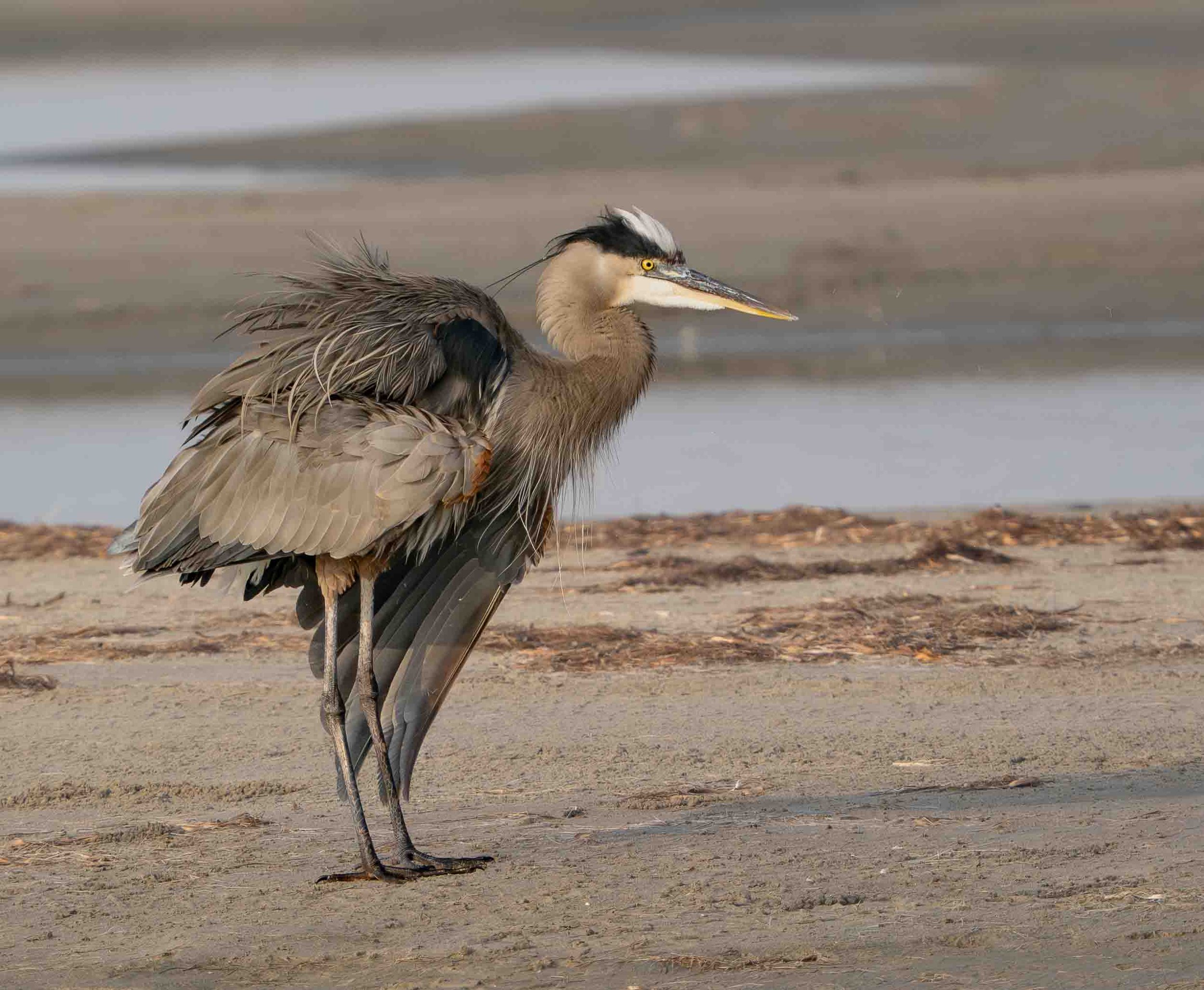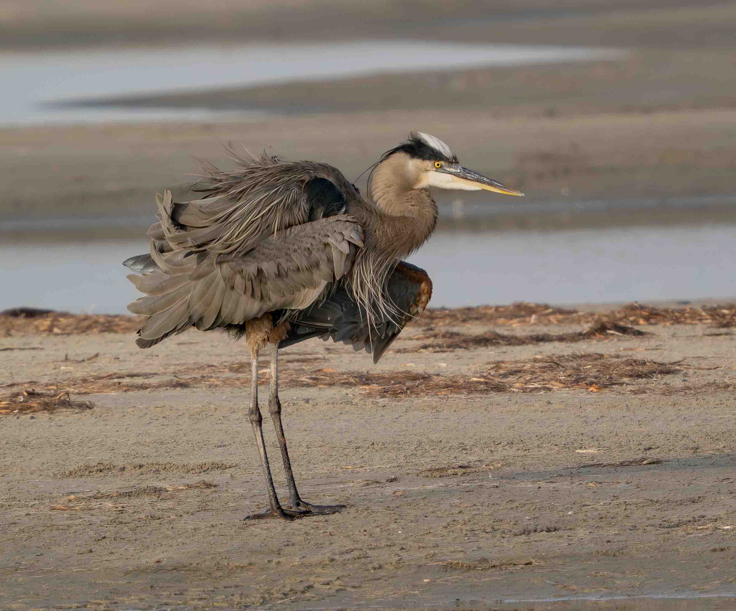 Six photos of a Great Blue Heron taken at a mudflat on South Padre Island on January 6, 2026 with my Olympus OM-1 camera and a 150-400 f/4.5 TC lens.
