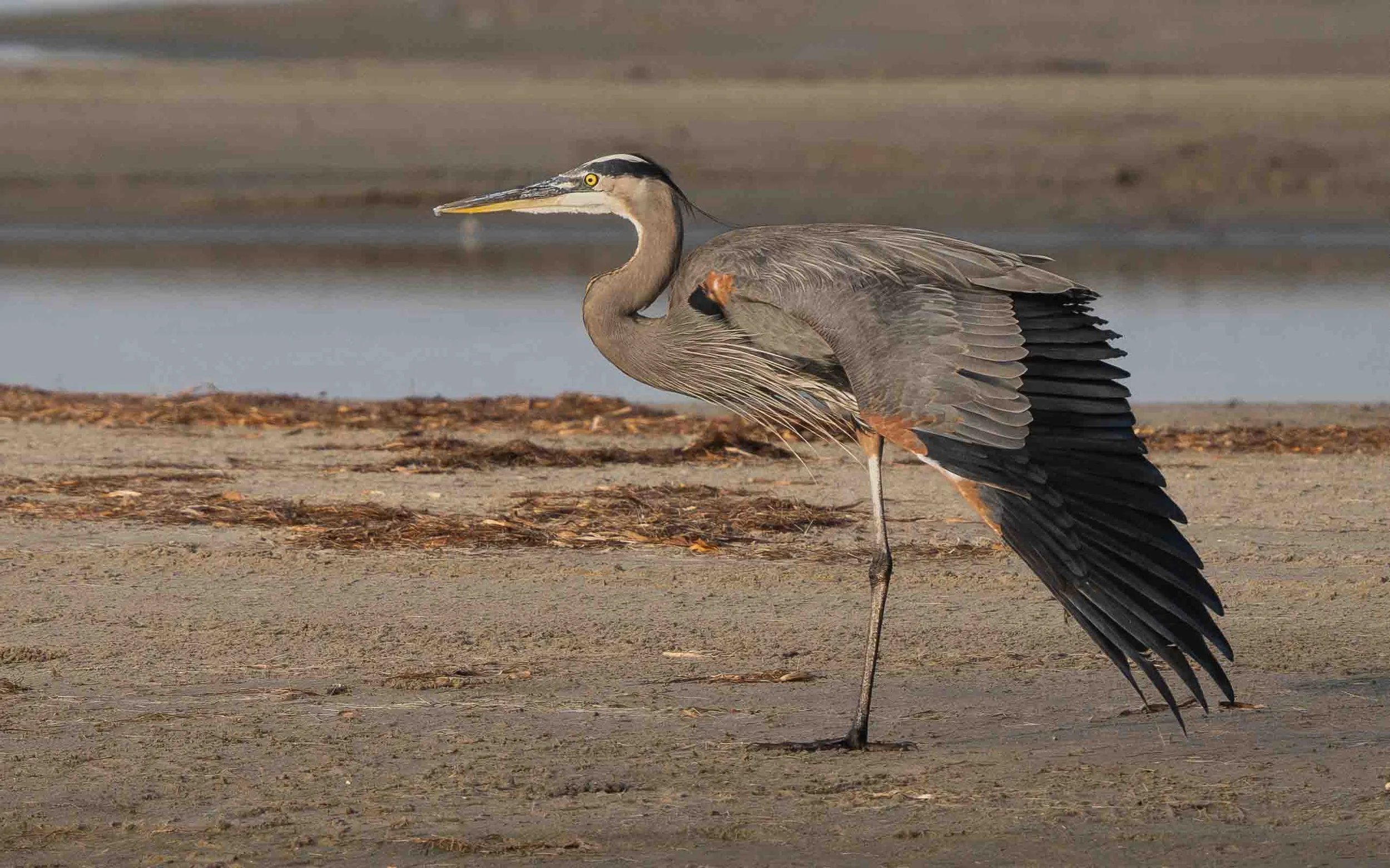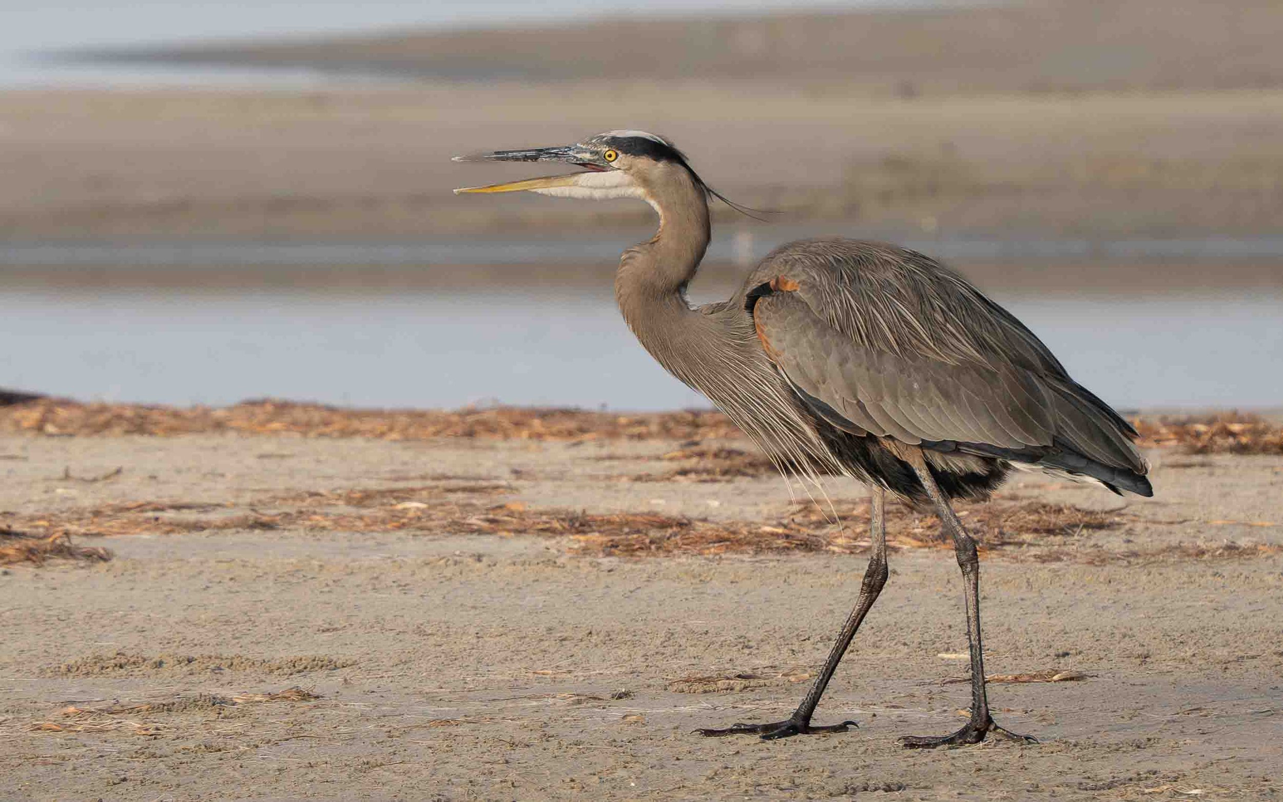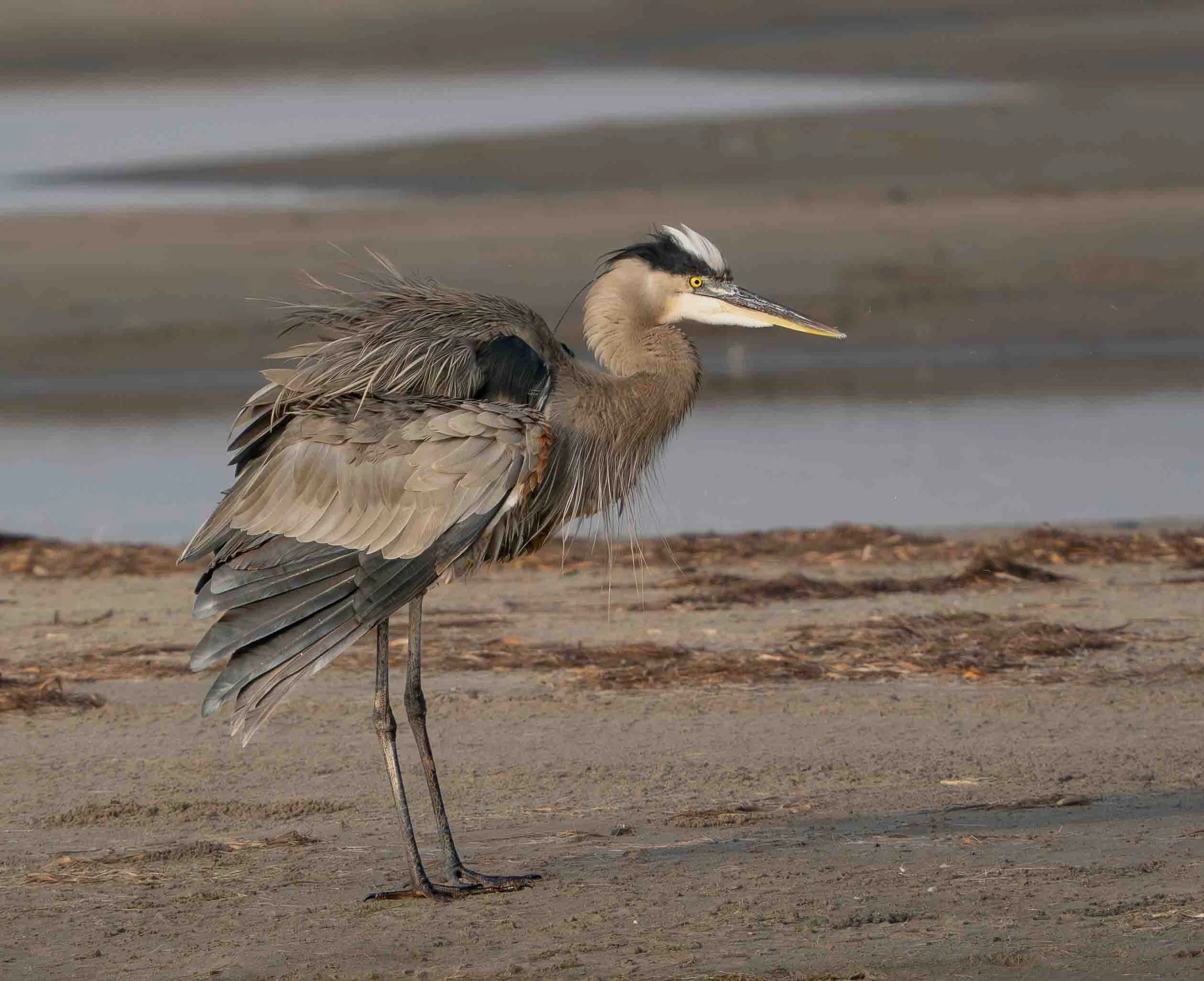 Six photos of a Great Blue Heron taken at a mudflat on South Padre Island on January 6, 2026 with my Olympus OM-1 camera and a 150-400 f/4.5 TC lens.